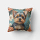 Cute Yorkshire Terrier Puppy Floral Throw Pillow