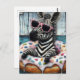 Cute Zebra Enjoys a Float Trip in Doughnut Postcard