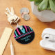 A pretty key chain in a zebra stripes pattern in black, turquoise, and hot pink. Add your name to it.