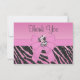 Cute pink zebra thank you flat cards perfect for a girl's birthday party and baby showers. Fun and glamorous custom pink and black printed zebra animal stripes glitter look invites with a pretty printed pink sparkly girly ribbon and bow and a beautiful whimsical little pink cartoon zebra and two lovely printed pink jewels hearts (on the reverse of the invites) on a pink background. These elegant cards are decorated both sides. Elegant, chic and classy, modern invitations. PLEASE NOTE: All products on Zazzle have flat printed images. If you need assistance customizing your product please contact me through my store and I will be happy to help. I have matching products in my store.