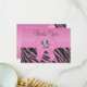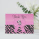 Cute pink zebra thank you flat cards perfect for a girl's birthday party and baby showers. Fun and glamorous custom pink and black printed zebra animal stripes glitter look invites with a pretty printed pink sparkly girly ribbon and bow and a beautiful whimsical little pink cartoon zebra and two lovely printed pink jewels hearts (on the reverse of the invites) on a pink background. These elegant cards are decorated both sides. Elegant, chic and classy, modern invitations. PLEASE NOTE: All products on Zazzle have flat printed images. If you need assistance customizing your product please contact me through my store and I will be happy to help. I have matching products in my store.