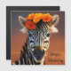 Cute black and white zebra wearing a halo of orange flowers in her hair.