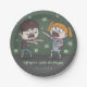 Zombie themed party supplies of paper plates that are age appropriate for kids without being scary! Design has a cute boy and girl who have been infected by the zombie virus and are going into a zombie trance. Various virus icons decorate the background. Add your party details. Great for kids Halloween parties and zombie themed birthday parties!