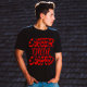 My 11 yo wore adult XL (5’7” 165#). The 8yo is small framed. She wore adult small and tied it in the back. Grandma wore adult large with long sleeve shirt underneath. Tall girl adult medium. Dark haired male adult large. Good quality dark Heather gray, Gildan brand shirt. -it was next up from basic choice and cost about $20 per shirt. Not too thick or thin. Washed and dried well, no major shrinkage. Not see-through. Can wear a bra under it fine. Screen print is just as shown and well done, front and back.