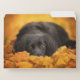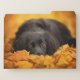 This Getty Cutest Baby Animals photo features a black spaniel lies in yellow and orange autumn leaves.