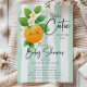 Celebrate the arrival of your little one with our charming little cutie baby shower invitation, featuring an adorable orange adorned with vibrant green leaves and delicate tiny flowers. Set against a trendy green stripe background, this invitation perfectly captures the joy and excitement of welcoming a new cutie into the world. Its playful design is sure to delight your guests and set the tone for a memorable celebration. Make your baby shower unforgettable with this delightful invitation that embodies sweetness and style.
