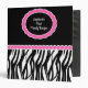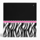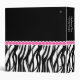 Cute black and white zebra print binder features fun stripe pattern on front and back with black and hot pink accents. Add your custom text to the front and spine.