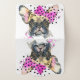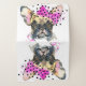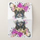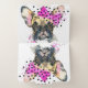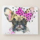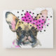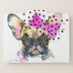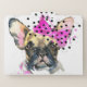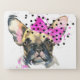 This design features a cute watercolor French Bulldog dressed in a very fashionable black and pink polka dot bow.