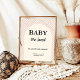 Decorate the sign with autumn leaves, pies, and baby-themed illustrations to match the Thanksgiving and baby shower theme.