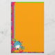 This custom letter writing stationery features the colors of the Cutie collection. An adorable little girl in pigtails surrounded by a rainbow of bubbles and flowers, this image is a smile waiting to happen. This personal stationery is a sweet and fun way to write letters to friends and family. Buy some with matching envelopes, postage stamps, envelopes seals, address labels and thank you notes to create a truly unique stationery set for yourself and as a gift!