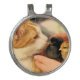 The ball markers arrived as promised however the quality was not as pictured. Both the black and blue markers have bubbles and what appears to be glue on the blue marker. Now that I have them in hand I feel like this is a printed piece of paper snapped between the marker pieces with adhesive. The examples look as if it is a solid image.