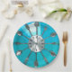 A blue and aqua clock face made from spoons and forks. How great is that for an awesome dinner plate!