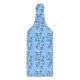Rising bubbles. On this "paddle" shaped cutting board, the bubbles rise as if inside a bottle. Bubbles in shades of blue and white, dance across a light blue background.