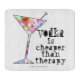 VODKA IS CHEAPER THAN THERAPY COCKTAIL HUMOR A humorous cocktail quote from The Martini Diva featuring a colorful Martini Glass filled with a Rainbow of Bubbles with a Cocktail Pick Accent.