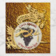 Customizable Wine label for Chinese New Year of the Dragon 2024 with grape, text in French "Cuvée Spéciale" and "of the Dragon Year" + Large 2024 (original handwriting) + family name on golden background with large golden Dragon paper-cut. All is customizable.