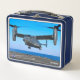 This is a standard metal lunchbox that appears to work just fine. We designed this box ourselves with an uploaded photo and custom text on the front and back. It looks absolutely beautiful except the front of the lunchbox is not centered like it shows in the photo. The print borders don't align with the inset flat part of the box where the preview photo online showed it perfectly centered in there. The back looks nice and centered though.