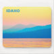 An intensely gold and pink sunset at on Lake Pend Oreille (Sandoint, ID), with the surrounding mountains being various shades of blue. The waters of the lake are also golden. The intense colors were the result of drifting smoke from forest fires in eastern Washington. In addition to the salmon pink color in the sky, the lake is inhabited by Kokanee, a landlocked Sockeye Salmon (Oncorhynchus nerka). Customizable text reading "IDAHO" also appears.