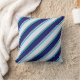 This throw pillow design features stripes colored cyan, dim gray, lavender, midnight blue, and black.