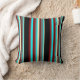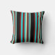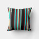This throw pillow design features a pattern of stripes having colors like cyan, dim grey, maroon, black, and beige.