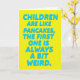 This greeting card features a bright electric yellow background paired with a punchy cyan accent, creating a lively, modern look ❤️. Centered on the front is a short, funny phrase in rounded sans-serif lettering that feels friendly and easy to read. The words sit along the middle of the card and are arranged with even spacing so the line breaks look balanced and natural. A soft drop shadow behind each letter adds a slight lifted effect, like the message is floating just above the surface. The color contrast gives the design a light, cheeky energy, like an inside joke shared between close friends. The playful tone comes through visually in the bouncy letter shapes and the way the text seems to lean into the bright background rather than sit stiffly on it 🌼. The main text appears in cyan against yellow, with the shadow in a darker tone that makes the letters stand out crisply. The final look shows the phrase centered, with generous yellow space around it and a cyan field framing the message.