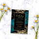 Cyan Marble Shiny Gold Foil Paint Texture Birthday Invitation