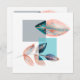 Modern design with squares and leaves in contrasting cyan, red, and orange colors.