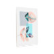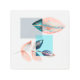 Modern design with squares and leaves in contrasting cyan, red, and orange colors.