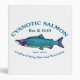 A blue-toned Sockeye Salmon with text reading "Cyanotic Salmon Bar & Grill Kenai, Alaska" and "Combat Fishing Rest And Relaxation. Fishing for salmon is very popular, too popular in Alaska. Imagine hundred of anglers, just about shoulder to shoulder, lining both banks of a stream trying to avoiding crossing lines with everyone else in hopes of landing a big salmon. That's combat fishing. After a day of that take some R&R at the mythical Cyanotic Salmon in Kenai. Fishing tales told there...some true.