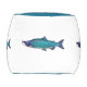 A blue-toned Sockeye Salmon with text reading "Cyanotic Salmon Bar & Grill Kenai, Alaska" and "Combat Fishing Rest And Relaxation." More blue salmon swim around the sides. Fishing for salmon is very popular, too popular in Alaska. Imagine hundred of anglers, just about shoulder to shoulder, lining both banks of a stream trying to avoiding crossing lines with everyone else in hopes of landing a big salmon. That's combat fishing. After a day of that take some R&R at the mythical Cyanotic Salmon in Kenai. Fishing tales told there...some true.
