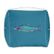 A blue-toned Sockeye Salmon with text reading "Cyanotic Salmon Bar & Grill Kenai, Alaska" and "Combat Fishing Rest And Relaxation." More blue salmon swim around the sides. Fishing for salmon is very popular, too popular in Alaska. Imagine hundred of anglers, just about shoulder to shoulder, lining both banks of a stream trying to avoiding crossing lines with everyone else in hopes of landing a big salmon. That's combat fishing. After a day of that take some R&R at the mythical Cyanotic Salmon in Kenai. Fishing tales told there...some true.