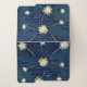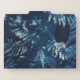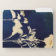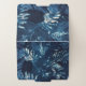 Artist-made cyanotype prints of Queen Anne's lace, marigolds, and mimosa leaves printed onto cyanotype file folders.