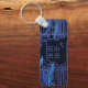 Cyber Blue PCB Circuit Board Trace Pattern Art Keychain