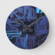 Cyber Blue PCB Circuit Board Trace Pattern Art Round Clock