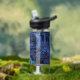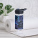 Cyber Blue PCB Circuit Board Trace Pattern Art Water Bottle