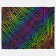 This fleece blanket features a trendy circuit board pattern shaded in a rainbow gradient on a black background. The background can be changed to any color you choose by customizing this product.