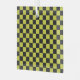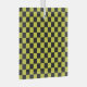 Yellow and black checkerboard pattern with alternating squares. The bold contrast creates a striking, geometric visual effect.