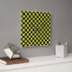 Yellow and black checkerboard pattern with alternating squares. The bold contrast creates a striking, geometric visual effect.