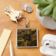 Cyber Orange PCB Circuit Board Trace Pattern Art Keychain