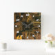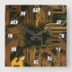 Cyber Orange PCB Circuit Board Trace Pattern Art Square Wall Clock