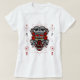 This visually striking image depicts a skull fused with robotic elements, creating a unique and unsettling hybrid. The skull's eyes are replaced with glowing red lenses, and its jaw is adorned with metallic plates and gears. The skull is surrounded by intricate geometric patterns and symbols, suggesting a connection to technology and spirituality. The overall color palette is a combination of red, black, and white, creating a striking contrast.