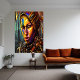 A young cyberpunk female warrior with yellow eyes and colorful painting in her face. This is a AI generated art.
