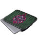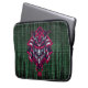 Own your edge. This cyberpunk samurai laptop sleeve fuses a neon pink Oni mask with green Matrix code for a bold tech aesthetic. Add your initials in semi-transparent font with dark stroke and turn it into a custom hacker statement. Protection meets futuristic warrior energy.