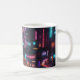 This vibrant and stylish ceramic mug features a stunning cityscape at night, adorned with neon lights and bustling urban energy. The design showcases a vivid array of colors including deep purples, bright pinks, and electric blues, capturing the essence of a futuristic metropolis. The high-quality ceramic material ensures durability and a comfortable grip, making it perfect for both hot and cold beverages. The glossy finish reflects light, adding to the modern aesthetic. Ideal for fans of city life, technology, and unique decor, this mug is a perfect addition to your daily routine.