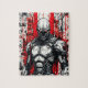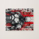 Piece together the future with this bold Cyberpunk Warrior Graffiti Puzzle, featuring a high-contrast design in black, white, and red. At the heart of the image stands a lone cyberpunk warrior — surrounded by chaotic abstract graffiti, glitch textures, and dystopian tech symbols — all rendered in striking comic book ink style.
