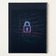 Tech-inspired planner featuring a neon padlock over code, designed for cybersecurity experts, programmers, and students. Organize schedules, track goals, and plan projects while showing your passion for digital security.