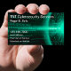 Unique modern Cybersecurity services business card template with abstract computer graphic in the background and text you can customize online. Designed for business data, cloud, systems, and network security.