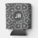 Cool can cooler printed all over with white bicycle wheels over a charcoal grey background. There's a customisable area on the front and back to add your own initials