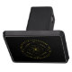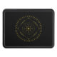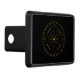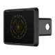 Cycles trailer hitch cover. Cycles is a Germanic design created by Anna M. Asbury and consists of a black background with an Aegishjalmr in the center and encircled by Elder Futhark Runes. The design is enclosed in a diamond with the Ingwaz Rune, flanked on all four sides with a bind rune, and encircled by the Jera and Ingwaz Runes.