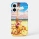 If you love the breezy pastel colors of a tropical lifestyle, the original photograph on this iPhone 16 Case is for you. The poster style photo by ZoeSPEAK shows a cyclist cruising along a Florida beach, past a palm tree backed by blue sky, green ocean, pink clouds and yellow sand.