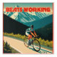 Riding your bike is always better than being at work. This design is a cyclist in the mountains in the style of a retro vintage travel poster.